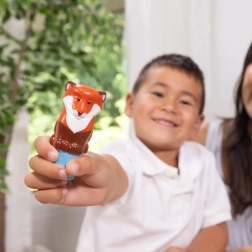 A gyerekeknek készült rókás bélyegző azonnal felhasználható matricákat készít a foglalkoztató füzetbe. Nincs ragasztó, nincs rendetlenség – csak tiszta szórakozás.