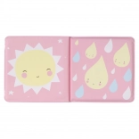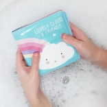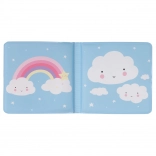 Ez a vízálló fürdőkönyv örömteli esti rituálévá varázsolja a fürdést. A felhőkkel, csillagocskákkal és esőcseppekkel díszített színes illusztrációk támogatják a legkisebbek kíváncsiságát és érzékelési fejlődését, miközben a puha, párnázott oldalak kellemes tapintásúak és biztonságosak a kádban való játékhoz.