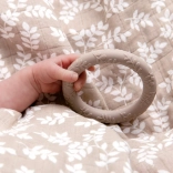 Két darabos, levélmintás szilikon rágóka készlet a fogzás alatti megkönnyebbülésért. A rágókák 100% szilikonból készülnek, kézbe simulóak, és könnyen tisztíthatók szappanos vízzel. Ergonomikus formájuk segít megnyugtatni az ínyt, és lefoglalja a babát az első fogak növekedésének kihívásokkal teli időszakában.