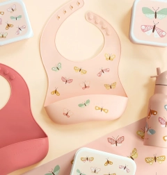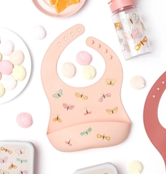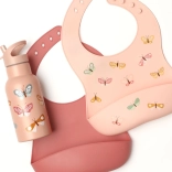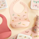 - 2× szilikon előke (1× pillangós minta, 1× egyszínű)