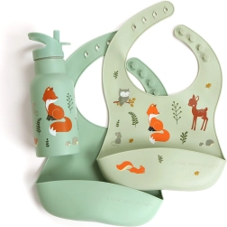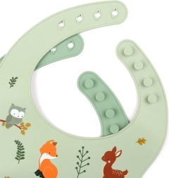 - 2× szilikon előke (1× erdei állatmintával, 1× egyszínű)