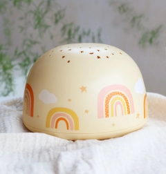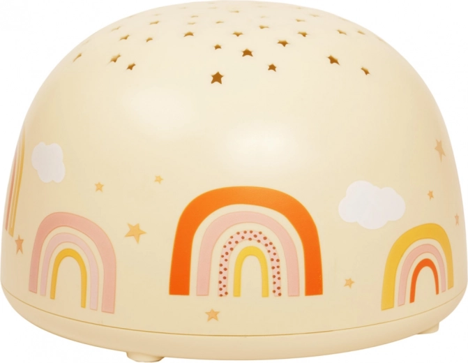 Ez a vaníliás sárga, szivárvány mintás éjjeli lámpa csillagokat vetít a gyerekszoba falaira és plafonjára, segítve a nyugodt elalvást. Kompakt méreteinek köszönhetően könnyen hordozható, az elemes, vezeték nélküli működés pedig a gyerekszoba praktikus kiegészítőjévé teszi.