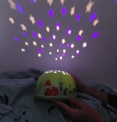 Teremts nyugodt, kellemes hangulatot a gyerekek elalvásához. A házikó alakú, csillagvetítős lámpa finom fényrajzolatokat varázsol a falakra és a mennyezetre, amelyek megnyugtatnak és biztonságérzetet adnak. A mentazöld dizájn kedves erdei motívumokkal bármely gyerekszobába remekül illik.