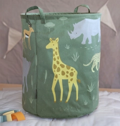 Tágas játéktároló kosár szavannai állatok motívummal, 63 l űrtartalommal a gyerekszoba gyors rendbetételéhez. A belső PE bevonatnak köszönhetően szennyes gyűjtésére is alkalmas, könnyen összehajtható, és stílusos dekorációként is megállja a helyét.