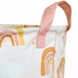 Stílusos tároló kosár vidám szivárvány mintával, amely rendet és játékos designt hoz a gyerekszobába. Könnyű, stabil, és a belső PE bevonatnak köszönhetően a szennyes gyűjtésére is alkalmas.