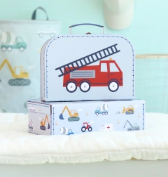 Fedezze fel az A Little Lovely Company praktikus és gyönyörű, két darabos kartonbőrönd szettjét, vonzó járműves mintával. Masszív kivitelének és okos részleteinek köszönhetően remekül illik a gyerekszobába és utazáshoz is.
