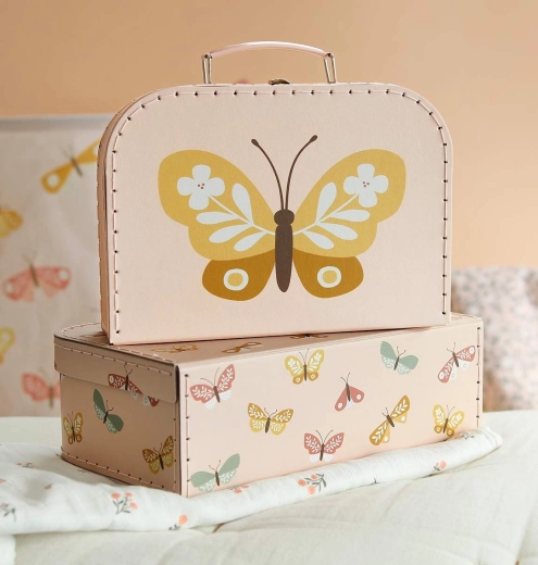 A Little Lovely Company két darabos karton bőrönd szett gyerekeknek erdei állatok motívummal – Pillangók