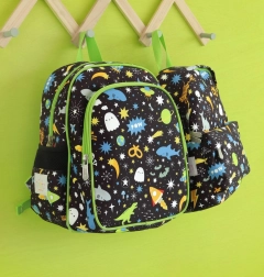 Fedezd fel a világot az egyedi hátizsákkal, rakétákkal, bolygókkal és csillagokkal. Az okos elrendezésnek köszönhetően minden szükséges holmit elpakolhatsz a mindennapokra az óvodában és a rövid utakra. A szigetelt elülső zseb tovább frissen tartja az uzsonnát, az italokat pedig a megfelelő hőmérsékleten.
