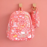Stílusos, korallszínű rózsaszín hátizsák vidám mintával, amely örömet szerez a kis utazóknak. A párnázott vállpántoknak, a csúszásgátló mellhevedernek és a légáteresztő, párnázott hátpanelnek köszönhetően egész nap kényelmesen viselhető. A szigetelt elülső zseb tovább frissen tartja az uzsonnát és az italokat, míg az oldalsó zsebek ideálisak a kulacsnak.