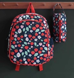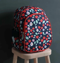 Ez a sötétkék hátizsák vidám epres mintával a mindennapi kalandokra készült. Átgondolt tagolásának köszönhetően a gyerekek könnyen elrendezik az iskolai felszerelést és az uzsonnát, míg a lélegző háttámla és a párnázott pántok egész napos kényelmet biztosítanak.