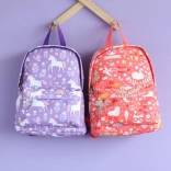 Aranyos gyerek hátizsák 2 éves kortól, tágas fő rekesszel és elülső cipzáras zsebbel uzsonnának és játékoknak. A párnázott vállpántoknak, a kényelmes hátpanelnek és a mellkaspántnak köszönhetően biztonságosan és stabilan ül a háton. Könnyű, strapabíró poliészterből készült, amelyet színes minta díszít, amit a gyerekek imádni fognak.