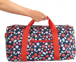 Ez a stílusos gyerek utazótáska játékos dizájnt ötvöz a praktikus tagolással az egyszerű rendszerezésért. A színes eperminta első pillantásra magával ragad, miközben az erős poliészter jól bírja a mindennapi használatot és a gyerek kalandokat.