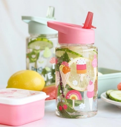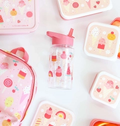 Az A Little Lovely Company átlátszó gyerek kulacsa fagylalt mintával szivárgásmentes kialakítással, kényelmes szívószálas ivórésszel és 450 ml űrtartalommal. Ideális az óvodába és kirándulásokra, és remekül passzol a hasonló mintájú kiegészítőkhöz.