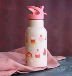 Stílusos rozsdamentes palack gyerekeknek fagylalt mintával, 350 ml űrtartalommal. A duplafalú szigetelésnek köszönhetően a italok tovább maradnak frissen. A praktikus szívószálas csőr hideg italokhoz és a tartós anyagok kényelmes, biztonságos használatot biztosítanak otthon, iskolában és kirándulásokon.