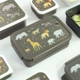 Ez a praktikus uzsonnás doboz szavannai állatmintával a gyerekek és a szülők kedvence lesz. Megbízható, patentos fedele megakadályozza a kifolyást és tovább frissen tartja a tartalmat. A kivehető, kétrekeszes tálca lehetővé teszi a gyümölcs, szendvics vagy snackek könnyű elkülönítését.
