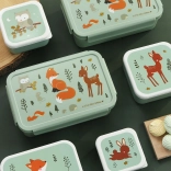 Praktikus uzsonnás doboz erdei állatok motívummal, ideális iskolába és kirándulásokra. Légmentesen záródó, patentos fedéllel és kivehető, kétrekeszes betéttel az egész napos, tökéletes rendszerezéshez.