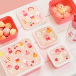 Aranyos, négy darabból álló A Little Lovely Company uzsonnásdoboz-készlet azonos fagylalt motívummal, különböző méretekben. A dobozok könnyen nyithatók és zárhatók, egymásba stócolhatók a helytakarékosság érdekében, és ideálisak ebédhez, uzsonnához vagy apróságokhoz utazáshoz.