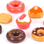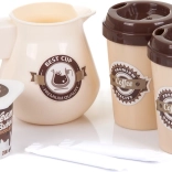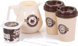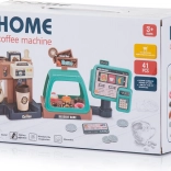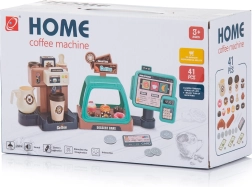 A készlet 41 féle tartozékot tartalmaz, beleértve a kávéfőzőt, csészéket, kávéprés eszközt, érméket, bankjegyeket, pénztárgépet és sütemény tartót.