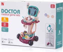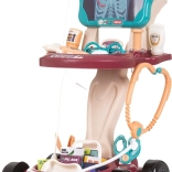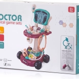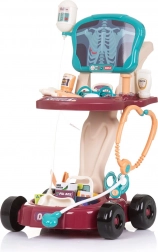 A kocsi áttekinthetően tagolt polcokkal rendelkezik a felszerelések számára, és széles kiegészítő-készletet tartalmaz: sztetoszkóp, infúzió, oxigénmaszk palackkal, valamint további eszközök a kis doktoroknak. A kerekeknek és a kompakt 58 × 42,5 × 32 cm-es méretnek köszönhetően könnyen mozgatható és stabil játék közben.