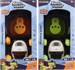 Ez a készlet ideális gyerekeknek és fiatal lövészeknek, akik szeretnék tesztelni készségeiket és pontosságukat. A dinoszaurusz alakú célterületen beépített akkumulátoros számláló található, amely minden találatkor megjeleníti a pontszámot, és hanghatásokat ad ki.