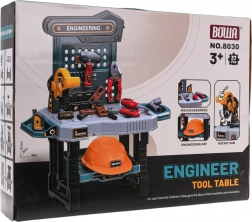 A készlet 37 részből áll, beleértve a sisakot, körfűrészt és sok más szerszámot, amelyek igazi kinézetűek.