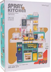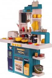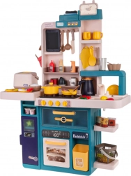 Ez a tágas, minőségi műanyagból készült konyha élénk színeivel és számos interaktív elemével nyűgözi le a gyerekeket. A forgatható gombok főzési és sütési hangokat aktiválnak, és egyúttal felkapcsolják a megvilágított égőket. A mosogatóban valódi víz folyik, a serpenyőből és lábasból pedig finom, biztonságos gőz száll fel, fokozva a valósághű élményt.