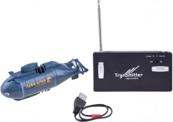 Megbízható 49 MHz-es frekvencia stabil hatótávval. Az adó töltőként is funkcionál – csak csatlakoztassa a kábelt a tengeralattjáró elejéhez.