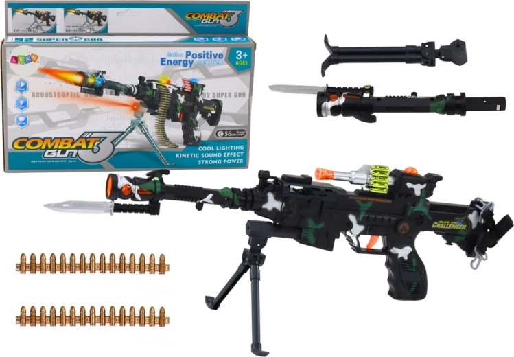 A gyerekek katonai kaladjainak tökéletes kiegészítője ez a karabély, amely hangokkal és fényekkel teszi izgalmassá a játékot. A játék biztonságos, hiszen nem használ valódi töltényeket, csak imitációt.