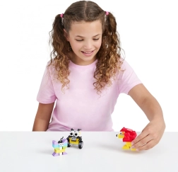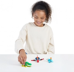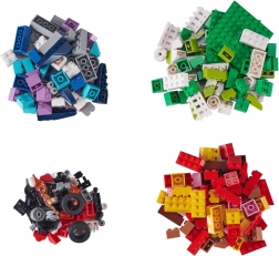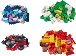 A színes elemek széles választéka és speciális alkatrészek, mint például lángok vagy kerekek, támogatják a finommotoros és kreativitásfejlesztést.