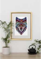 Összeállítás után egy színes, gazdag mintázatú farkasfejet kap, amely otthona berendezésének feltűnő eleme lesz.
