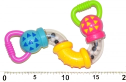 Színes csörgő a legkisebbeknek, amely támogatja az érzékelés és a finommotorika fejlődését. A forgó csövecskéknek és a csörgő golyócskáknak köszönhetően kellemes hangokat ad, kényelmes fogóival könnyen tartható, és mérete ideális a kisgyermekek kezébe.