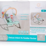 A praktikus függesztőrúd kedves függő játékokkal támogatja az érzékszervi fejlődést és a koordinációt. Amint a gyermek megnő, a szék önálló székként is használható 18 kg-ig – egyetlen termék, amely hosszabb növekedési időszakot fed le.