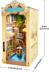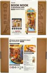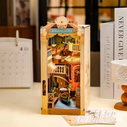 Fedezze fel VELENCE romantikáját a könyvespolcán. A Romantic Venice könyvtámasz egy bájos sikátorrá változtatja a polcot gondolával, maszkokkal és kávézóval. Az átlátszó műanyag hatásos vízfelületet hoz létre, amely a LED világítással és érintőkapcsolóval együtt esti hangulatot varázsol. Az elemek pontosan illeszkednek, és ragasztó nélkül állnak össze, így a megépítés kényelmes és tiszta.