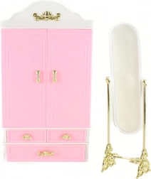 Adja hozzá gyermeke játékaihoz a Glorie ruhásszekrényt és tükröt, amely átlátható dizájnnal és funkcionalitással érkezik a babák számára. A gyerekek élvezhetik a ruhák tárolását a praktikus vállfáknak köszönhetően, míg a tükör eleganciát kölcsönöz a játékszínnek.