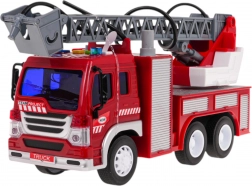 Interaktív tűzoltóautó hang- és fényfunkcióval, valamint vízpermetezéssel 3 éves kortól. A tűzoltóautó a legjobb minőségű anyagokból készült, élénk színekben. Mozgatható elemekkel rendelkezik, mint például fel-le állítható létra, amely kihúzható és visszatolható is. A létra végén platform található a tűzoltó tömlő csatlakozójával, amelyből víz folyik. A pótkocsi elején víztartály található. Miután a tartályt vízzel feltöltöttük, elég megnyomni a tartály felső részén lévő gombot, és a víz folyni kezd. A tűzoltóautó fülkéjének tetején elhelyezett gombok megnyomására megszólal a sziréna, a duda vagy a jármű indulási hangja. A hangokat villogó kék fény kíséri. A jármű gumigumi abroncsokkal és első tengelyes súrlódásos meghajtással rendelkezik. AG13 elemekkel működik (a csomag tartalmazza). .. A jármű funkciói: . - 3 éves kortól ajánlott, .- kiváló minőségű anyagokból készült, .- 1:16 méretarány, .- mozgó elemek: fel-le állítható, kihúzható és visszatolható létra, .- a darukar 360 fokban forgatható, .- víz folyik a tűzoltó tömlőből, .- első kerekek súrlódásos meghajtása, .- gumiabroncsok, .- fényhatások: villogó fények a jármű tetején, .- hanghatások: szirénahang, duda vagy a jármű indulási hangja. . |