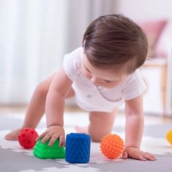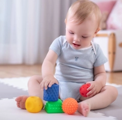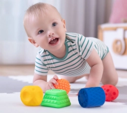 A játékok textúrái és formái segítik a gyermekek tapintási és mozgásos képességeinek fejlesztését.