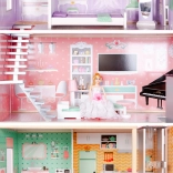 A babaház 3 szintet és 4 különböző berendezésű helyiséget kínál: konyha, fürdőszoba, nappali és hálószoba terasszal. A nyitott hozzáférés támogatja a közös játékot és a fantázia fejlődését.