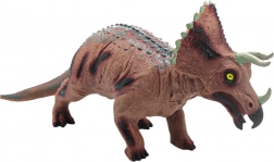 Texturált „bőr”, gallér és három szarv, valamint a sárga szemek autentikus megjelenést kölcsönöznek a prehisztorikus óriásnak.