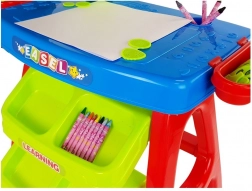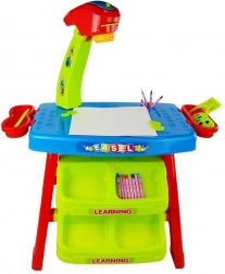Ez a színes asztalka kivetítővel minden alkotást szórakoztató és oktató kalanddá varázsol. Csak helyezd be a kiválasztott lemezt, kapcsold be a kivetítőt, és az A4-es papíron megjelenik a kontúros vagy színes kép – a gyermek könnyedén átrajzolhatja és kiszínezheti a mintát. A formákat és betűket segítő sablonoknak köszönhetően gyakorolhatja a geometriai alakzatok felismerését és az első betűírást.
