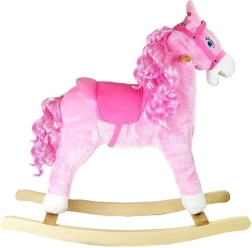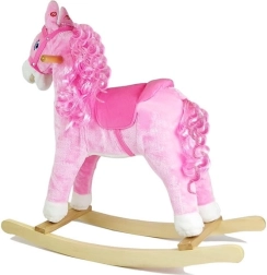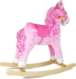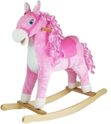 A bájos rózsaszín hintaló vadnyugati hangulatot varázsol a gyerekszobába. Puha plüss felületet, biztonságos fa fogantyúkat, kényelmes kengyeleket kínál, és a fül megnyomására élethű nyerítést, patadobogást és vidám dallamot ad. A még nagyobb élményért a ló mozgatja a száját és a farkát, fejleszti az egyensúlyt, a koordinációt és a képzelőerőt.
