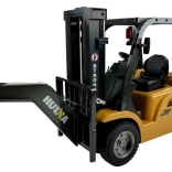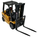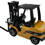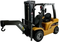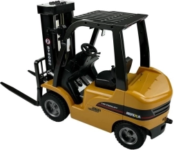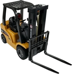 A kínált távirányítós targonca igazán erős gép. A munkaszínekben tartott jármű számos fekete elemmel rendelkezik, melyek határozott karaktert kölcsönöznek neki. A szerkezeti elemek kiváló élethűségének köszönhetően bátran bemutatható az eredeti mellett. A targonca két játék raklappal érkezik az áru szállításához. A „targonca” funkción felül cserélhető kampós kiegészítővel is rendelkezik, így emelőként is használható. A járművet vezérlő távirányító nagy méretű kezelőgombokkal van ellátva, ezért különböző kézméretű felhasználók számára is kényelmes. A targoncát nagy kapacitású, 7,2 V-os tölthető akkumulátor táplálja, amely hosszú, gondtalan játékot biztosít. A távirányító négy darab AA elemmel működik – nem tartozék.