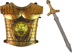 Bemutatjuk a gyermek lovagi jelmezt, amely minden kis hőst elrepít a mesék varázslatos világába. Az arany páncélzat, kiegészítők, mint a védfelszerelések, pajzs és korona, valódi középkori harcos érzetét kelti a gyermekekben. Minden rész minőségi és biztonságos műanyagból készült, amely hosszútávú és biztonságos játékot garantál.