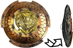 A pajzs részletesen díszített, és nemcsak játékra szolgál, hanem szép dekoráció is lehet a gyerekszobában.
