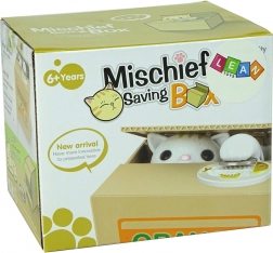 Nyomja meg a dobozon lévő gombot, és a macska felemeli a fedelet, majd a mancsával behúzza a pénzt.