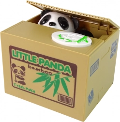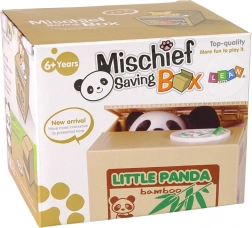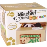 Nyomja meg a gombot a dobozon, és a panda felemeli a fedelet, majd a mancsával behúzza a pénzt.