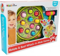 Amikor a lemez leáll, a játék véget ér. Számold meg a találatokat, és add át a kalapácsot a következő játékosnak. Több eltalált vakond dönt a győztesről! Gyorsabb tempó nagyobb kihívást jelent. A teljes légkört vidám zene kíséri.