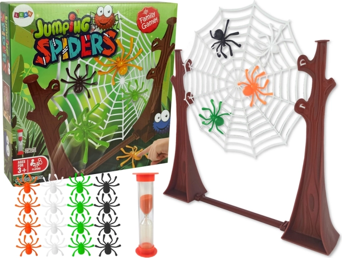 Kézügyességi játék - Ugráló Pókok: Szórakoztató és izgalmas kaland az egész családnak! Teszteld kézügyességed és gyorsaságod ezzel a lenyűgöző játékkal! Vajon kinek sikerül elsőként elhelyeznie a pókcsapatát a célban? Az ügyesség és a taktika elengedhetetlenek ebben az izgalommal teli játékban, amely felejthetetlen élményeket nyújt a gyerekeknek. Egyszerre akár 4 fő is játszhatja, a szabályok pedig rendkívül egyszerűek. Néhány pók fent marad, míg mások leesnek. Az időt egy homokóra méri, így különösen izgalmas a kihívás.