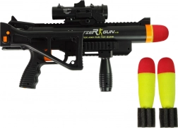 Ez a gyerek gránátvető kiválóan felszerelt az akciódús játékhoz otthon és a szabadban is. Oldalt működő zseblámpa található a környezet megvilágításához, felül okulár/optika a jobb célzáshoz, hátul pedig felhajtható válltámasz a stabil vállon tartáshoz. A speciális rugós mechanizmus erőteljes kilövést biztosít, melyet valósághű robbanás-, újratöltés- és sorozatlövés-hangok kísérnek. A habrakéták puhák és biztonságosak.