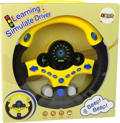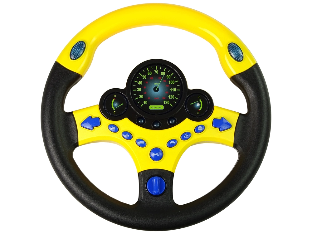 A kormány sárga és fekete színű. Összesen kilenc gombja van, köztük két irányjelző, duda és vészjelzők. Csak fordítsa el az indítókulcsot, és kezdődhet a játék! A kormányon lévő órák kék fénnyel világítanak. A megjelenésnek és az LED-eknek köszönhetően a kisgyermek úgy érzi majd, mintha valódi úton vezetné a saját autóját. A kormány tökéletesen illeszkedik a kis kezekbe. Itt az idő, hogy gyermeke szimulálja a vezetést.