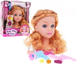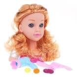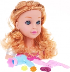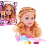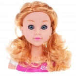 A hosszú, hullámos szőke haj és a valósághű arckifejezés autentikus fodrászat élményt nyújt, és ösztönzi a gyermeki kreativitást.